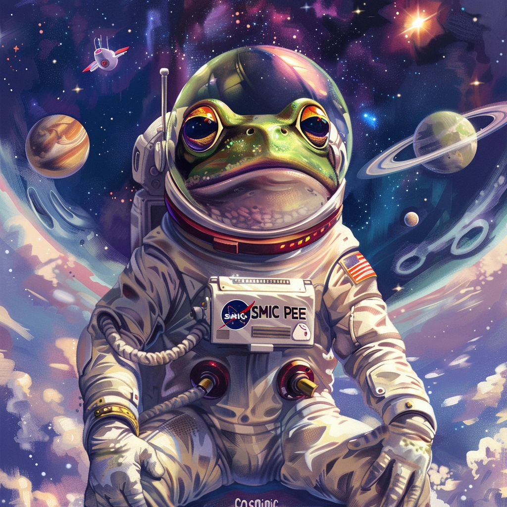 The vision of Cosmic Pepe is to create a vibrant and inclusive community where meme enthusiasts can come together to share, create, and enjoy memes without the pressure of financial speculation. Our mission is to foster a culture of creativity, collaboration, and positivity within the Cosmic Pepe ecosystem, where every meme counts and every participant is valued. This is not an investment.